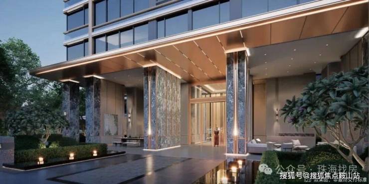 ①酒店式环岛门庭:无雨落客,仪式感归家门庭,约70米超长奢阔延展面,约7米高门阙,气度非凡仪式感满满