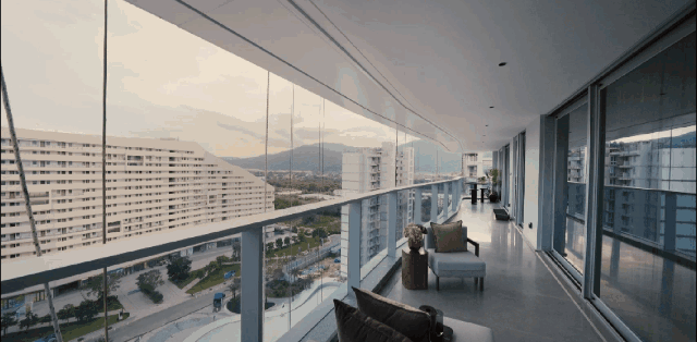 建面积约203㎡户型,21.5 m长的270°全景阳台