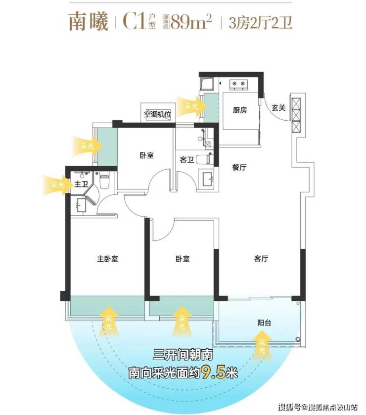 89㎡圈层3房2厅2卫,70套,330-360万,单价约3.75-4万/㎡