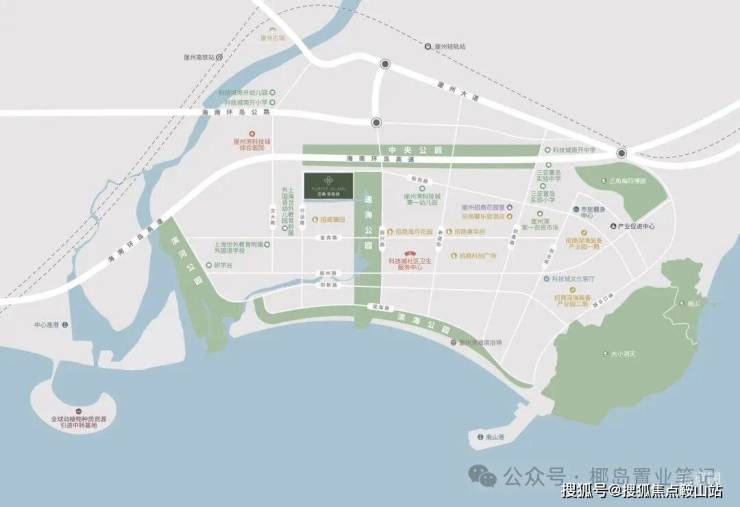 项目落位科技城芯,距崖州湾海岸约1.5公里,邻通海公园,享成熟配套,兼顾度假与生活。