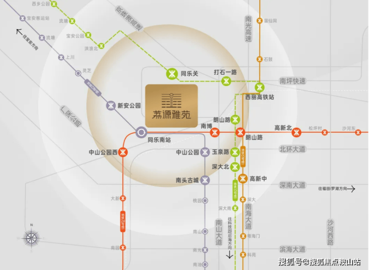 荔源雅苑|踞南山南头同乐片区,邻同乐实验学校、物联网产业基地,位处南山与宝安交界,周边宝安中心、西丽枢纽、深超总等高能级片区环伺。