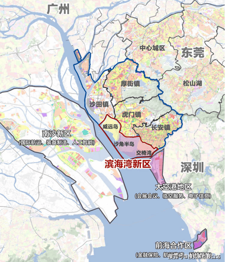 值得注意的是,前海扩容后,与东莞滨海湾新区连成一片。未来,东莞滨海湾将受到来自深圳前海的一级辐射!