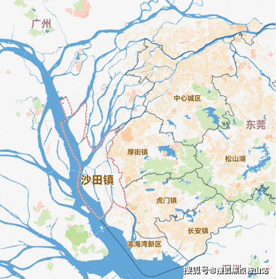 摊开地图,可以看到沙田与虎门、长安一起紧挨滨海湾新区,承接来自滨海湾新区的一级辐射。