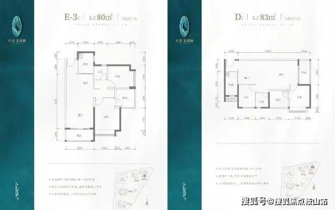 E3户型(80㎡):东南向,主卧+客厅朝南,得房率90.2%。
