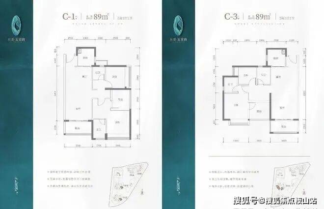 C1/C2户型:东南向,客厅+主卧阳台直面茅洲河,得房率90.6%-90.9%。