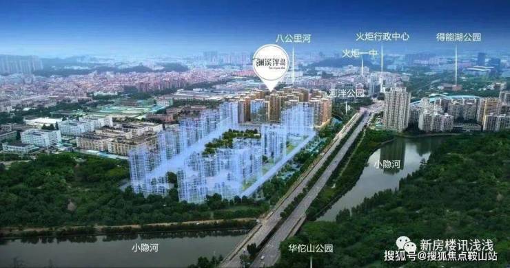 项目位于中山火炬开发区康乐大道与东镇东一路交汇处(华佗山公园旁),项目占地约198亩,总建筑面积约50万㎡,ART DECO建筑风格,2.3万㎡水景园林,项目分2期开发,一期由1-23栋17层高洋房组成。坐拥片区两大绿肺——华佗山公园和得能湖公园。华佗山公园占地38万㎡、得能湖公园占地16万㎡,是火炬区大型的主题绿化休闲公园。项目东面、南面、北面三面临河(北面:八公里河;东南面:小隐涌)。