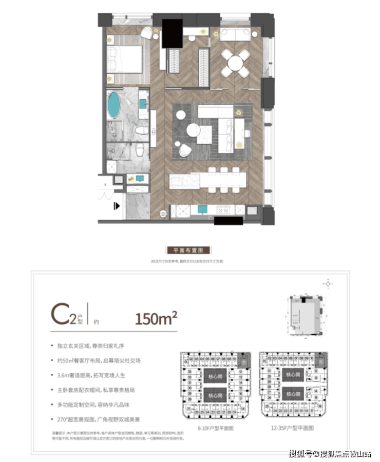 户型面积:低区及中区(8-35F)户型面积约57-150㎡;高区(37-44F)户型面积约270-830㎡;