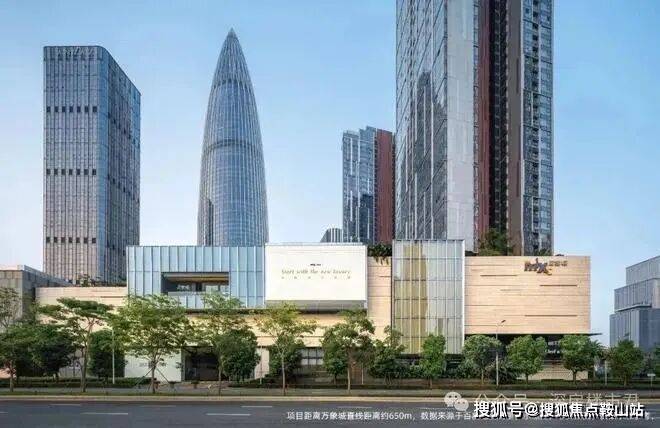项目验资千万可体验沉浸式参观,参观时手机需封藏,板楼设计加持,神秘感十足。项目坐落于后海总部基地核心区,周边写字楼群林立,营销中心身处繁华却以酒店式落客区彰显从容气质。