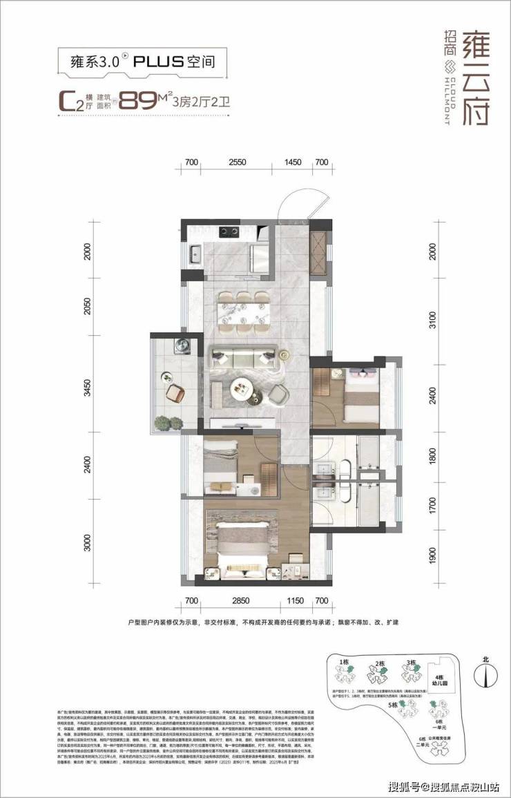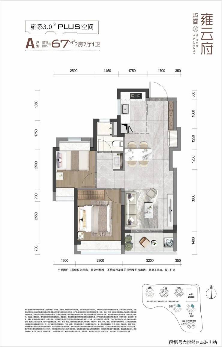 【建筑面积】约13.4万㎡【容积率】约3.5【绿化率】约40%【产权年限】70年(2022年-2092年)【车位】折算后约1050个【使用率】约80%【可售套数】927套【产品面积】建筑面积约 66㎡ 2房1卫 / 79㎡ 3房1卫/ 89㎡ 3房2卫 / 109㎡ 4房2卫【物业公司】招商积余物业