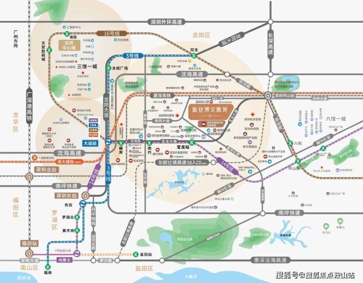 16号线坪山站 :坪山站升级“坪山综合交通枢纽”,16号线、高铁、深大城际(宝安机场——坪山,在建)三轨交汇;