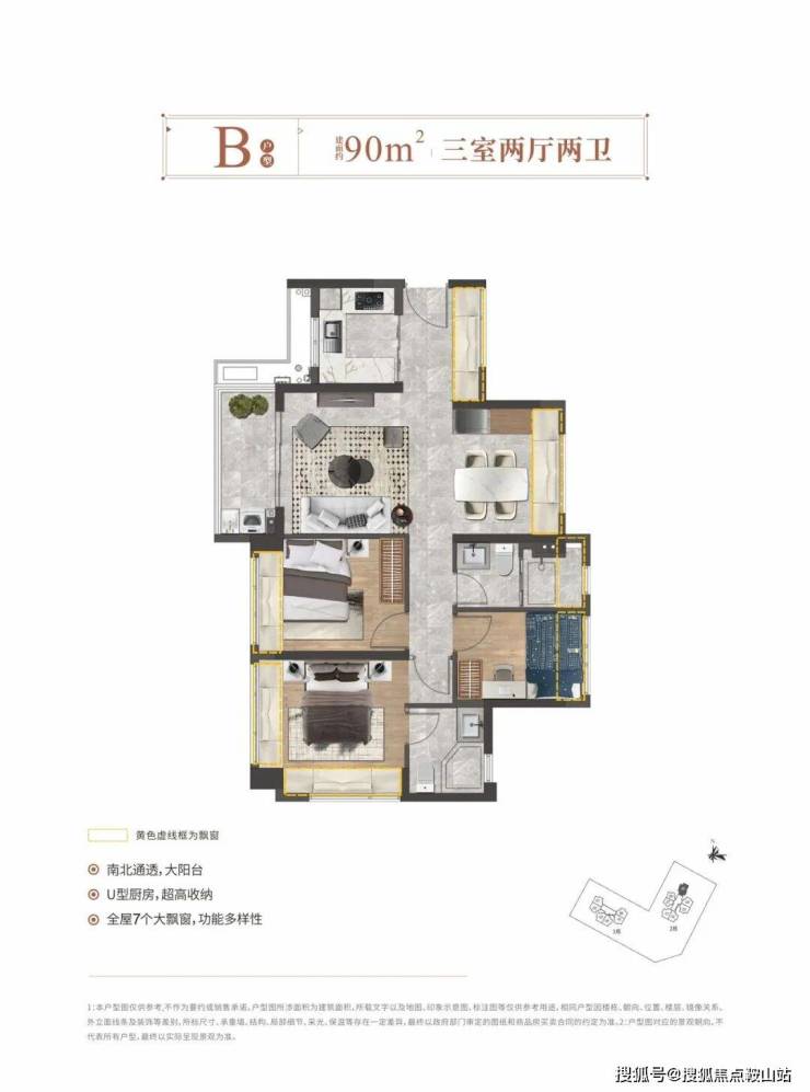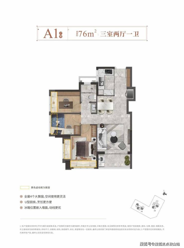 【产品面积】:76㎡3房2厅1卫、90㎡3房2厅2卫