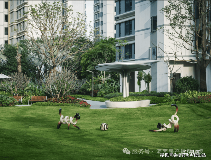 绿树成荫,潺潺流水,搭配特色雕塑及对景流水墙,打造轻松的艺术氛围,让业主舒适归家, 漫渡悠闲归家时光。