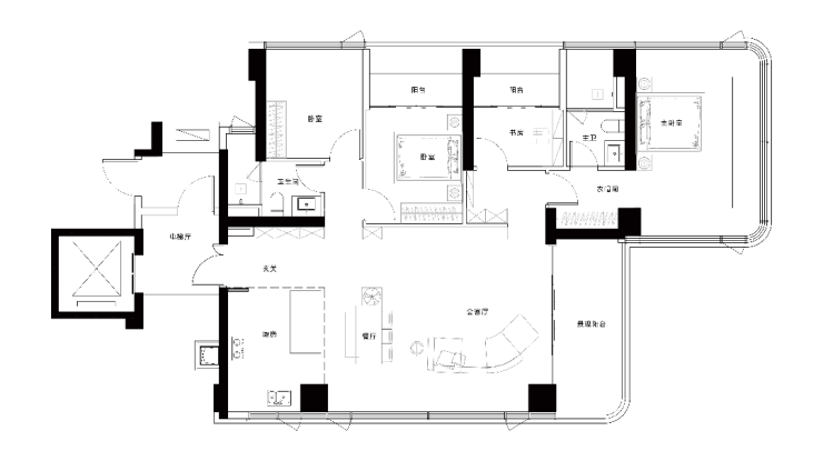 少承重墙 + 轻质隔墙,空间布局灵活可变