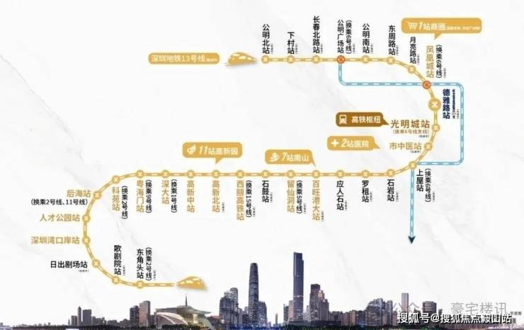 地铁13号线(在建中):最优黄金科创线,7站南山,直达南山留仙洞、科技园、深圳湾,高效通勤线路