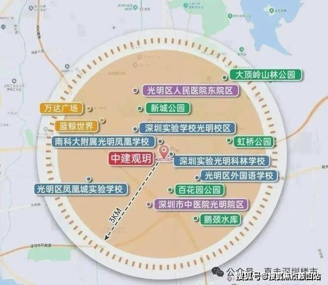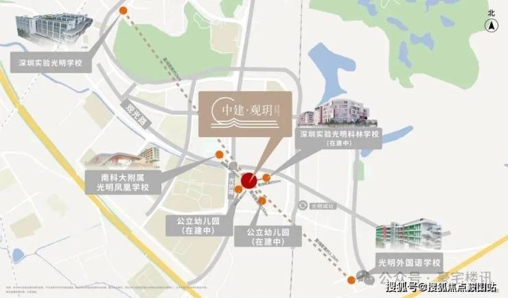 观玥名邸,位于光明区凤凰街道光侨路与观光路交汇处东南侧,地处凤凰城板块,根据光明十四五规划,凤凰城板块定位为光明科技总部基地,科创融合先锋商务区,提升光明城站枢纽地位,争取在2035年建成竞争力影响力卓越的世界一流科学城和高 质量高颜值的深圳北部中心。