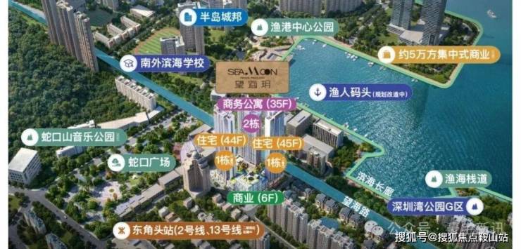 招商望海玥位于深圳市南山区蛇口新街与渔村路交汇处、距离地铁2/8号线东角头站267米;推出的是389套公寓产品、36--60平一至二房.