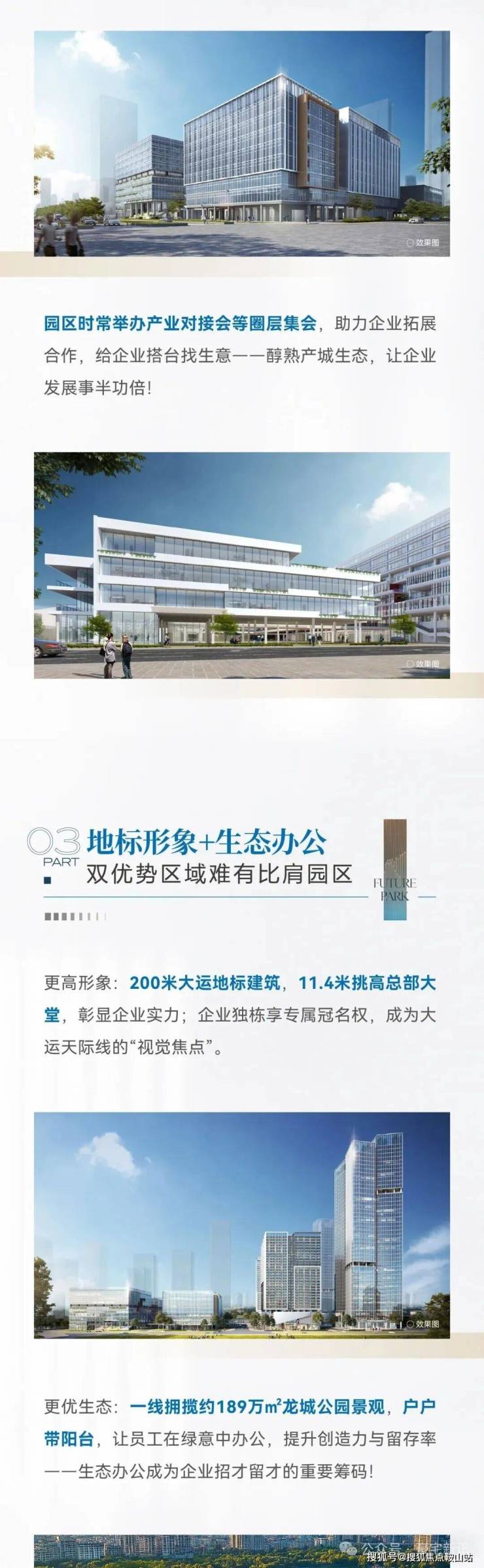 2.龙岗区众多政务服务机构分部周边,为企业提供各项综合服务,附近多家量级和商务酒店满足不同规格商务接待,中工农招等多家金融机构,为企业提供便捷金融服务,隐秀高尔夫俱乐部,大运中心公众高尔夫球场是企业家交流平台,创造更多商业机会。