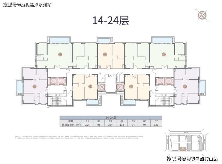 面积:94㎡1房,132㎡2房,224㎡3房 顶复400㎡