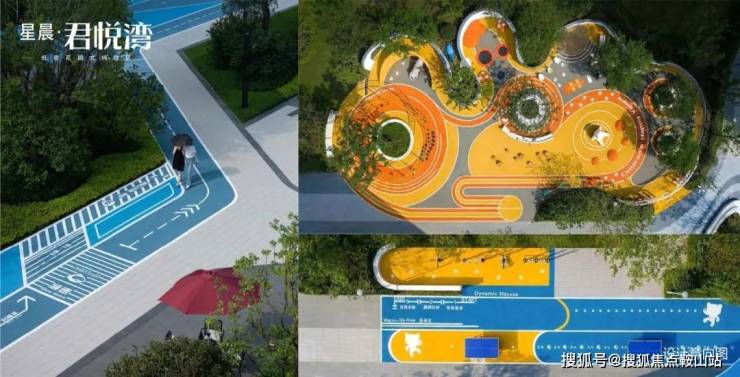 星晨·君悦湾以围合式布局中央园林,呈现一个低密度、高绿化的社区环境。同时,园林设计了丰富植被+大小乔木组合,仿造生态自然园林,宛若一个四季森林氧吧。功能也很丰富,融入了水岸休闲式度假泳池、多功能社交泛会所、全龄儿童活动区、长者休闲健身区、500米社区跑道等,满足全龄段生活方式。