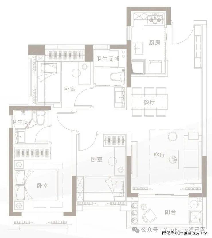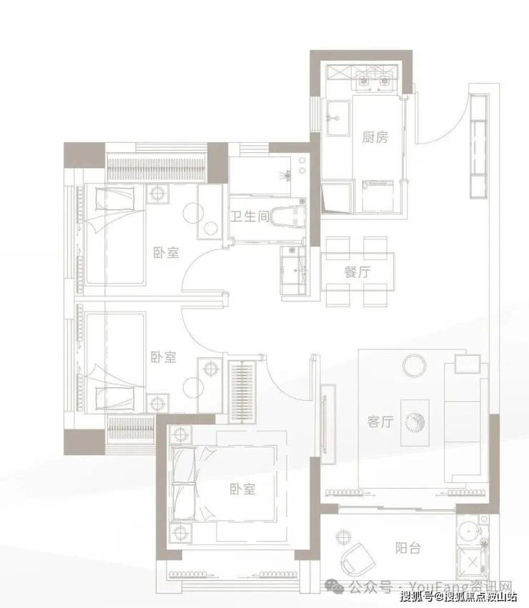 🔻面积:79-85㎡3房1卫,91-95㎡3房 2卫,125㎡4房2卫