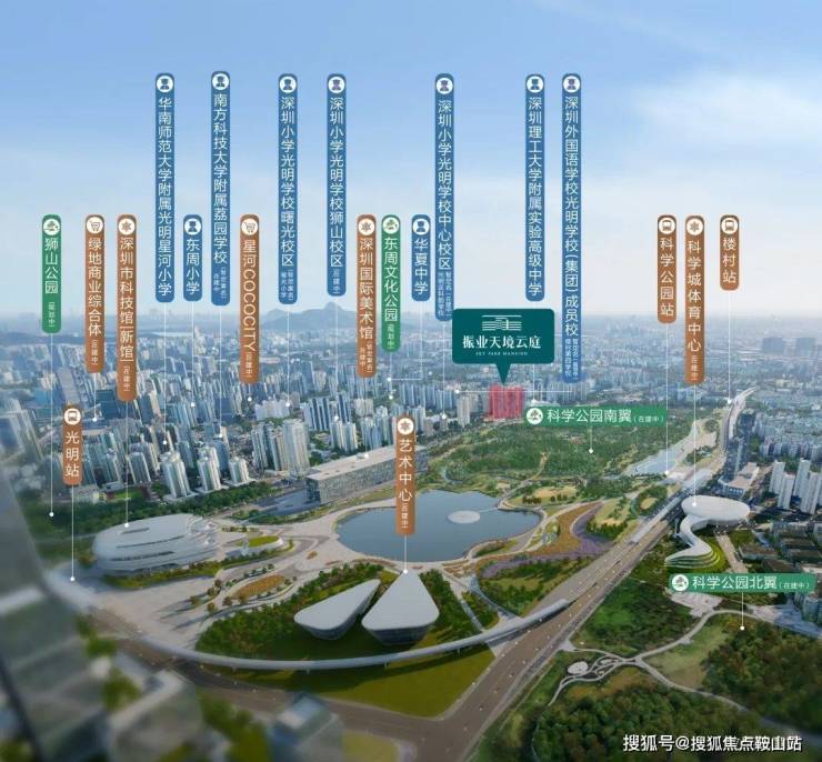 包括科学公园横跨的三座地铁站(楼村站、科学公园站、光明站),以及环伺的深圳科技馆新馆(建设中)、深圳国际美术馆(暂定名,建设中)、艺术中心(建设中)、光明书城、体育馆、科学岛等“五馆一岛”城市级文化地标。