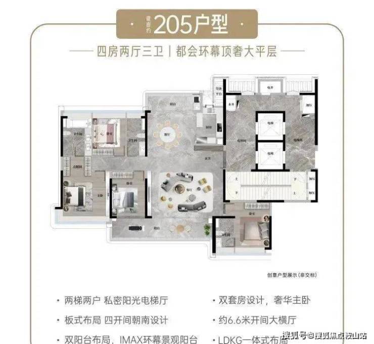项目的首推140平户型做到全屋南向四开间,搭配约7.5米的L型大阳台,窗外的风景效果,比巨幕还要震撼!