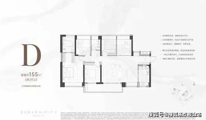 建面约155㎡全明奢阔五房震撼发售,藏品级宽绰大户,一体化大横厅设计,尽揽一方山海景致,以宽奢尺度延展家庭想象,满足三代同堂居住需求。