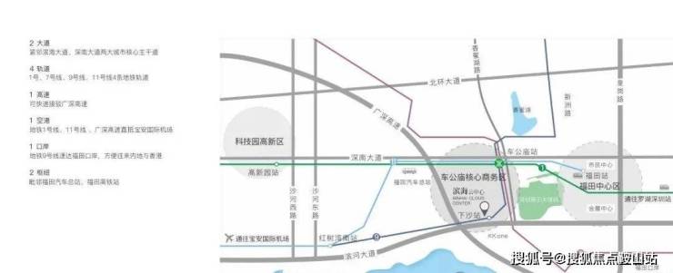 万科滨海云中心,依托滨河大道、香蜜湖路、深南大道、福强路4城市主干道,以及1、7、9、11号线4地铁串联海陆空轨跨境交通枢纽,极大降低商务出行耗时,提升环球商务效率