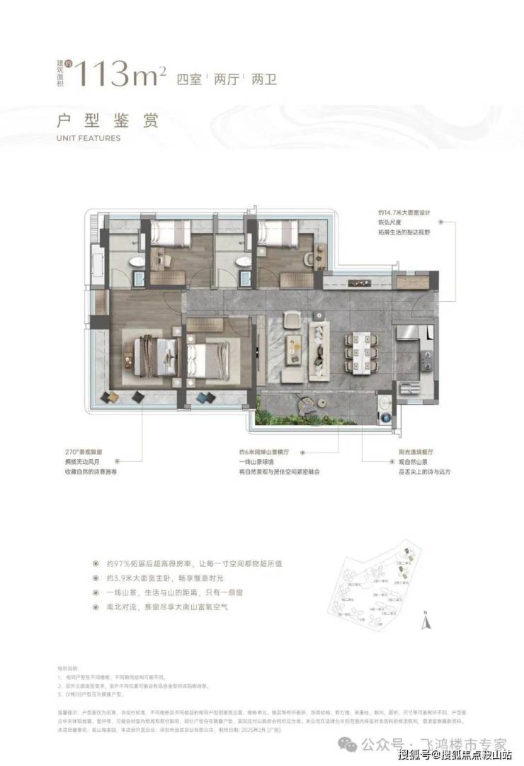 🏞山境高层:建面约95㎡3房和建面约115㎡4房高层