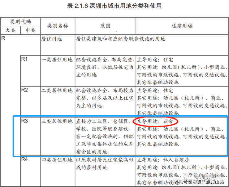 什么是R3性质用地呢?R3用地全称为三类居住用地(住宅是二类居住用地),在类别上属于居住用地,适建用途是宿舍。