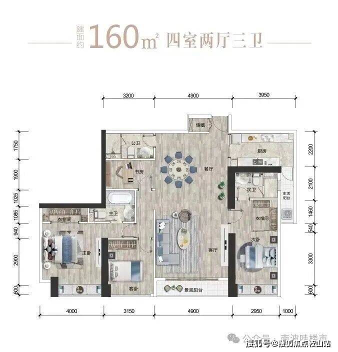 【户型③】北03+05/南08+09:约160㎡四房两厅三卫