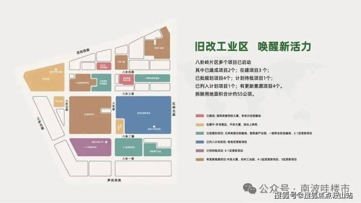 八卦岭片区多个项目已启动,其中已建成项目2个,在建项目3个,已批规划项目4个,列入计划项目1个,计划待批项目1个,有更新意愿项目4个。拆除用地面积合计约55公顷。
