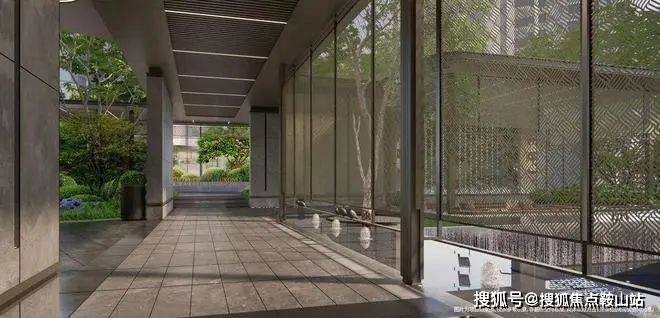 以灯带、镂空格栅顶以及御湖水纹,打造了风雨连廊,在保障无雨归家的同时,设计师通过与水借景,与光借景,与园林借景,带给业主归家的第三道礼序。