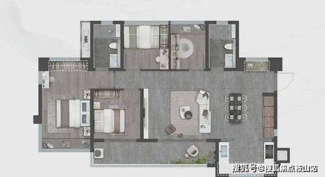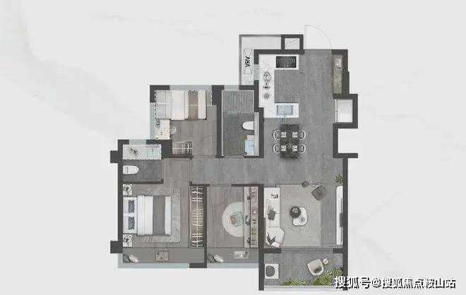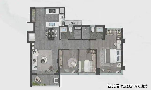 在售户型;御雲:建面约80㎡,三室两厅1.9卫,创新型1.9卫设计,臻享从容生活