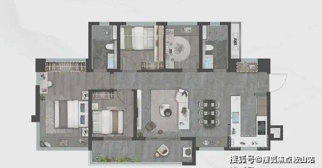御峯:建面约120㎡,四室两厅2卫,270°转角飘窗,宽境主卧套房