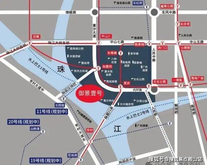 自驾——项目北向接驳内环路直通白云机场;南向东新高速一路畅达广州南站;西向广珠西线、广佛放射线直达佛山;东向东沙隧道通荔湾/海珠连接口;