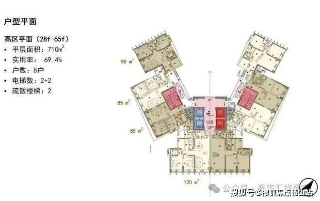 项目主力户型为85-125㎡的2-3房,均为现房销售,剩余房源集中在46楼以上高区,视野无遮挡。