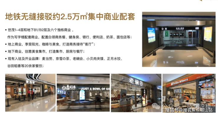 B2-L4层约2.3万㎡集中式商业街区,含品牌餐饮、轻食简餐、健身房、银行、咖啡厅等多业态,2019年8月起,前海世茂下沉广场商业街区部分餐饮相继开业;