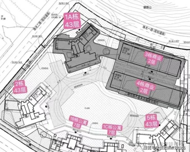 项目分两期实施:一期A项目(珠光和山悦花园)由花伴里开发,总建面约19.83万㎡;一期B项目由京基开发,总建面约25.5万㎡。