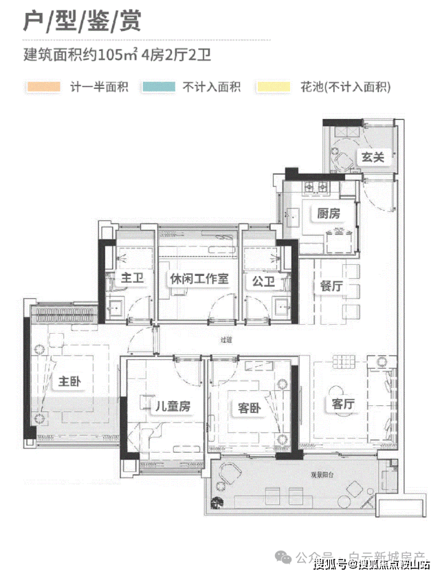 2.87㎡四房两卫:实用四房,超105%白云最高实用率户型