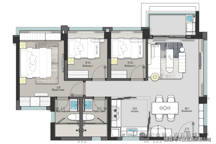 3.105㎡四房两卫:实用四房,超高使用率的大四房