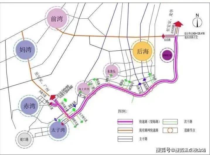 蛇口的交通规划中最令人期待的莫过于望海路快速化改造,东西向连接兴海大道和沙河西路,全长约为8.241公里,呈“U”字形,将极大提升片区通达度,改造已于2021年开工,工期预计为72个月,其中微波山隧道导洞已顺利贯通,预计今年10月完工。望海路将改造为“地下快速路——地面主干路”的复合通道。望海路快速通道西起兴海大道,东接沙河西路,途经太子湾、海上世界、蛇口老城、后海填海区等片区,全长约8公里。据悉,望海路改造将分为地下、地上双层道路,其中,地下道路定位为城市快速路,地面道路定位为城市主干道。建成后,蛇口半岛将形成快速环路,对外出行时间平均缩短15分钟以上,为整个南山区,尤其是前海蛇口自贸片区提供更加高效、快捷的对外联系通道。望海路由目前的双向4车道,改造后变成地下快速路4-6车道,地面主干路4-6车道,实现与各区高快速路的“快-快”衔接转换,大手笔投入的背后,更诠释了一个区域的发展维度,与后海、前海加速融合,同频共进
