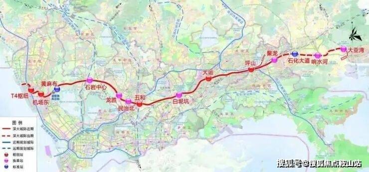 另外项目旁还规划有深大城际“龙胜站”,3站就可到宝安机场东,该线路全线长约69.2公里,目前仅深圳段动工,是由宝安T4开往惠州大亚湾,途径宝安区,龙华区,龙岗区,终止坪山聚龙站,总设站11座,设计时速160公里,预计在2026年开通运营。