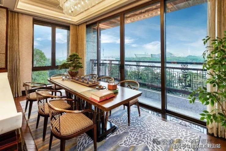 • 317-398㎡环江巨幕平层:九宫格宫殿格局,中西双厨设计,主卧八角窗观景,层高3.47-3.57米;