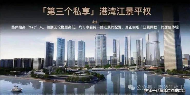 【第三个私享】坐拥约700米看江面,纯一线江景湾居为尽可能利用38米宽港湾地,住宅整体抬高14米,与港湾融合,享受三江汇流景观,纯一线江景。