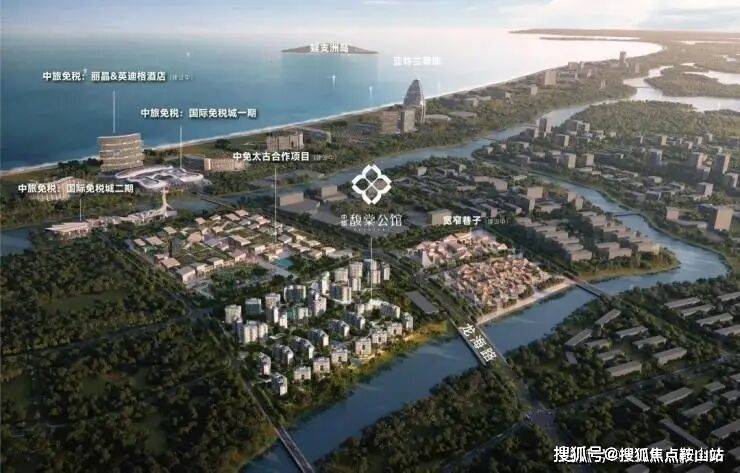 项目位于三亚市海棠湾黄金地段北端,与亚龙湾和清水湾相连。项目位于中旅免税城西北侧。用地周边有河道及景观绿化带。
