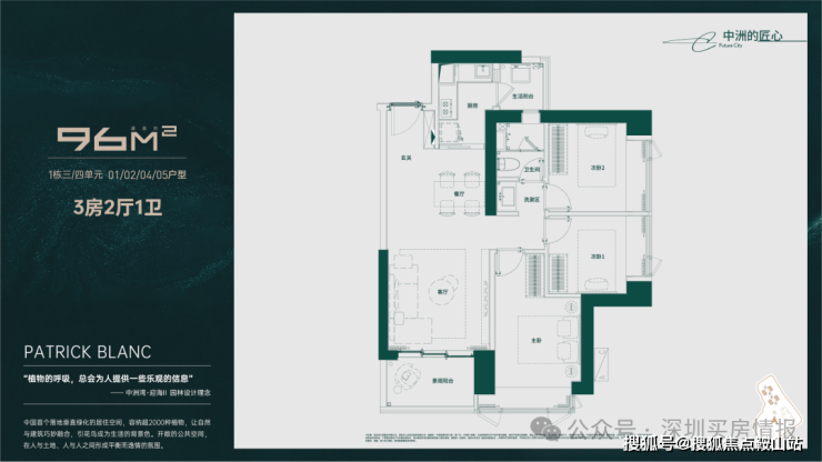 96-109㎡3房主力户型、125㎡4房臻藏户型,4梯6户舒适梯户比,3.15米阔绰层高,约7600㎡空中花园、顶奢酒店式入户大堂,公园环抱的潮流商业艺术街区、一场融合科技、自然、雅奢的“水之旅程”园林及深圳湾稀缺红树林海景等多维立体视野。