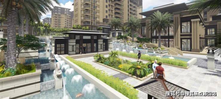 项目以东南亚风格为蓝本,层层递进的水系景观,从入口的叠水景观,到拾阶而上的汀步水景,再到中央泳池。