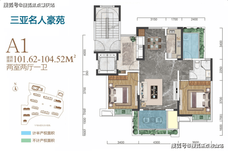 A1 户型:为二居室、南北设计,餐厨一体,有超 8㎡巧思空间,270° 观景阳台连接客厅,4.3 米面宽客厅,通风采光俱佳,空间宽阔大气。