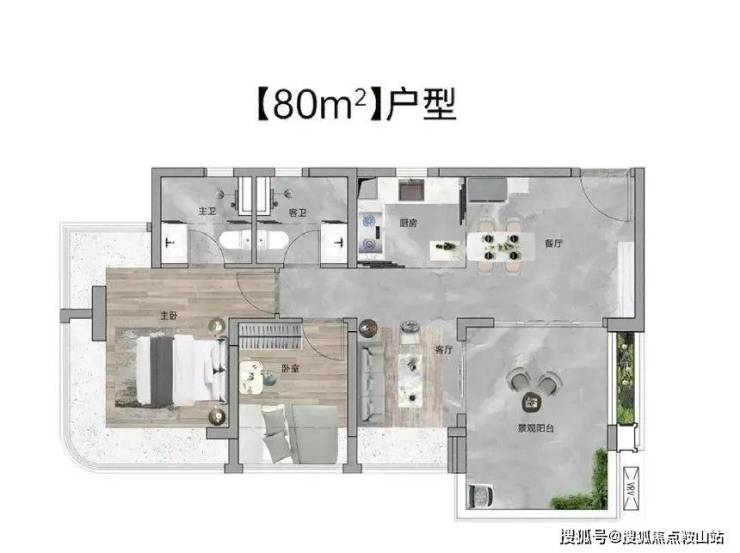 以 80㎡三房为例,通过 “LDKB 一体化 + 灵动空间” 设计,实现四开间朝南,主卧带 270° 弧形飘窗,实际使用面积约 82㎡,相当于传统 90㎡户型的空间感;
